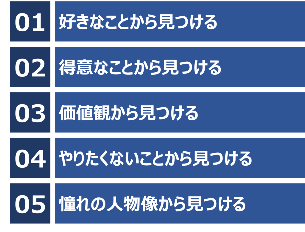やりたいことを見つけるには、感覚的に探すのではなく、具体的な切り口を持つことが効果的です。