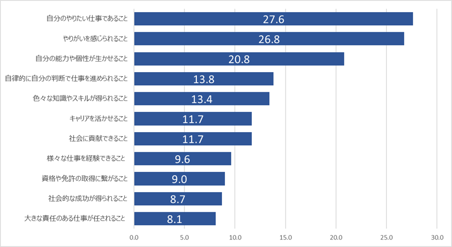 パーソル総合研究所の調査によると、転職や就職活動において「やりがいを重視する」と答えた人は全体の27%です。